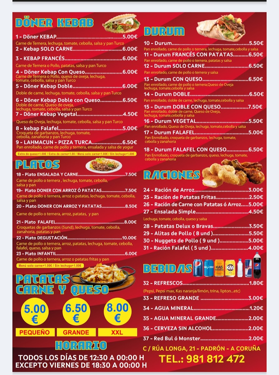 Welcome to Doner Kebab Padron, a gem located in the heart of Padrón, A Coruña. This Turkish restaurant is renowned for its delicious doners, offering a harmoniously balanced blend of flavors that will captivate your taste buds. From the moment you step inside, the inviting atmosphere, though modest, sets the stage for a satisfying culinary adventure.